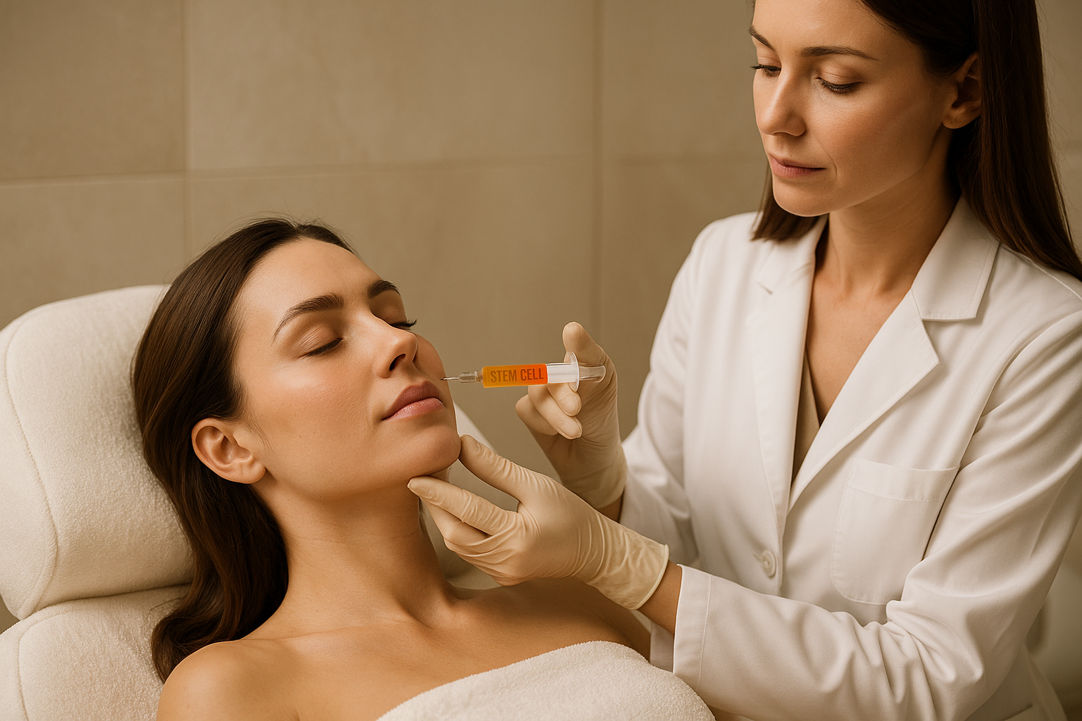 Microdosed stem cells are injected into concern areas (jawline, scalp, joints, or acne-scarred zones) for localized tissue regeneration, collagen activation, and structural repair.